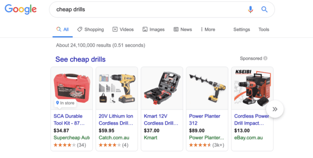 Transaction keywords are keywords that you want to rank for as they’re relevant to your product or service. They are ‘transaction’ keywords because the user knows what they want, your aim is to be the solution to their problem or query. These keywords should be present on the relevant pages. For example, if you own an online tooling company some of your transactional keywords for your drill page may be:
